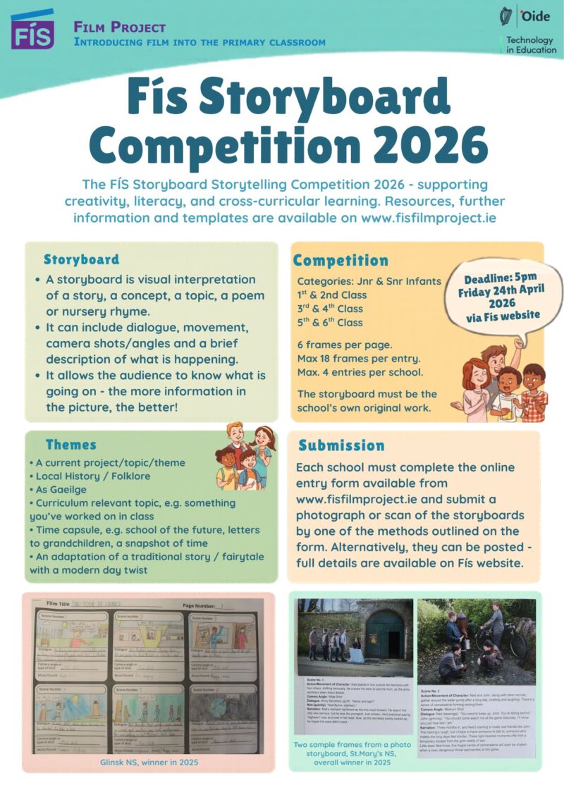 At FÍS, we are all about making films, be it live action or animation. We just love to see and hear that Dept. of Educaction designated Irish primary schools engage in the film-making process. You may have recently completed a CPD course in Digital Storytelling (film or animation) in your local Education Centre provided by our partners, OIDE, or completed one of their online CPD courses or perhaps you just want to jump straight in. Either way you will find the teacher resources available here will support you to introduce filmmaking into your classroom.